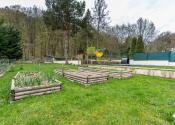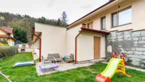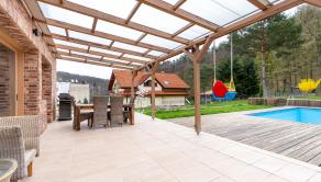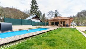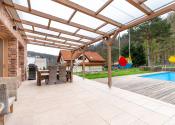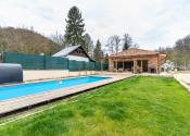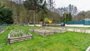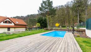Súčasťou pozemku je aj krytá terasa s príjemným posedením, na ktorú sa vchádza z obývacej izby. Na rozľahlom pozemku sa nachádza aj vonkajší bazén s rozmermi 8 x 3 x 1,5 m, vyvýšené záhony a množstvo zelene. Zo záhrady sa viete dostať priamo do lesa.