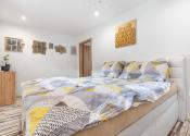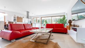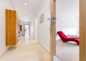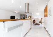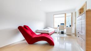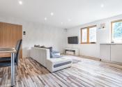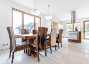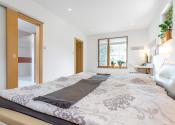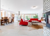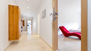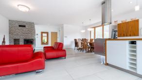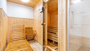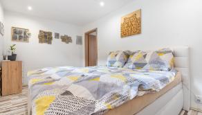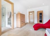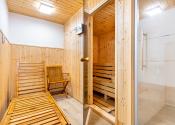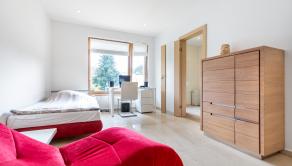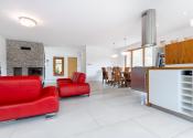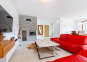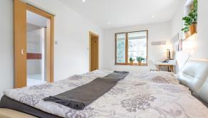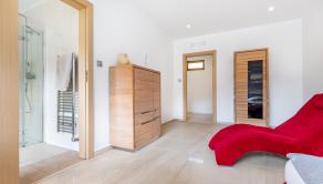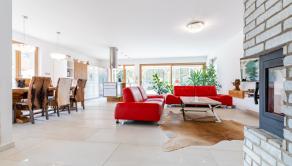 Vstupná chodba so šatníkom a samostatná miestnosť využívaná ako botník, obývačka s kuchyňou a jedálenskou časťou, izba s vlastnou kúpeľnou so sprchou a umývadlom, technická miestnosť využívaná aj ako práčovňa, viacúčelová miestnosť, spálňa s veľkým šatníkom a vlastnou priestrannou kúpeľnou s vaňou, sprchovým kútom, toaletou a umývadlom, dvojgaráž, technická miestnosť, oddychová miestnosť s fínskou saunou, viacúčelová miestnosť so samostatným vstupom