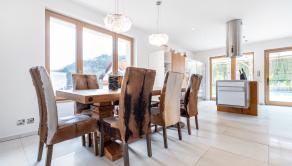 Pri stavbe vily, ktorej kolaudácia prebehla v roku 2013, boli použité kvalitné nadštandardné materiály. Tešiť sa môžete na nehnuteľnosť vo vynikajúcom udržiavanom stave, postavenú z pálenej tehly, zateplenú 12 cm izoláciou, euro okná sú drevené s izolačným trojsklom a na streche je použitá falcovaná plechová krytina RUUKI. V troch miestnostiach je príprava na klimatizáciu. Vila sa predáva so vstavaným a na mieru pripraveným zariadením (kuchynská linka, vstavaný šatník, šatníkové skrine, knižnica). Energetická trieda vily je B s plynovým kúrením (podlahové teplovodné kúrenie a zásobník na teplú vodu). Druhý 3 izbový rodinný dom typu bungalov môže slúžiť na podnikanie alebo moderné bývanie.