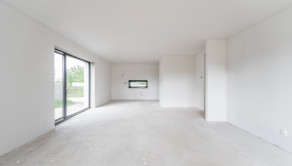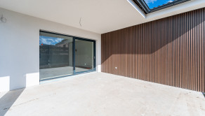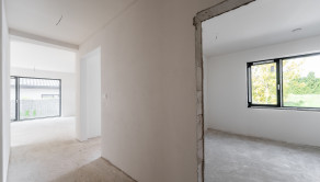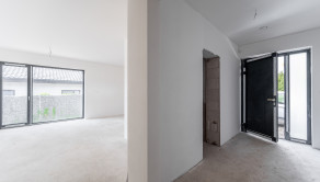 Dom ponúka praktické a funkčné riešenie interiéru s jasne oddelenou dennou a nočnou časťou. Denná časť pozostáva z otvorenej kuchyne prepojenej s jedálenskou a obývacou časťou, s výstupom na priestrannú krytú terasu o výmere 27 m². Nočnú časť tvoria tri spálne kde hlavná spálňa má svoju vlastnú kúpeľnu s toaletou, ďalšia kúpeľňa, technická miestnosť a samostatná toaleta. Dom je presvetlený vďaka veľkoformátovým oknám a otvoreným priestorom, čo vytvára pocit vzdušnosti a elegancie.