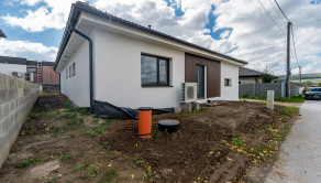 Rodinný dom sa nachádza na pozemku s rozlohou 500 m², pričom samotný dom má úžitkovú plochu 135 m² a terasu o výmere 27 m². Stavba spĺňa energetickú triedu A0, čo zaručuje maximálnu úspornosť prevádzky. Dom je postavený z kvalitného muriva YTONG hrúbky 300 mm, zateplený polystyrénom s hrúbkou 200 mm. Strešná krytina je antracitová škridla, doplnená o plastové izolačné 3-sklo okná značky SCHÜCO a hliníkové vchodové dvere a HST portál, ktoré podčiarkujú moderný charakter domu. Interiér ponúka vápenno-cementové omietky, cementové potery a predprípravy na obklady, dlažby, sanitu a interiérové podlahy.V dome je nainštalované tepelné čerpadlo IVAR Thermia (vzduch/voda) s funkciou podlahového kúrenia aj chladenia, čím je zabezpečený celoročný tepelný komfort. Súčasťou je aj vzduchotechnika s rekuperáciou a chladením, ktorá zabezpečuje čerstvý a zdravý vzduch v celom interiéri. Elektroinštalácie sú kompletne hotové a ukončené vypínačmi. Pripravené sú predprípravy na kamerový systém, fotovoltiku, videovrátnika, autonabíjačku, vnútorné zabezpečenie aj exteriérové žalúzie.