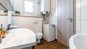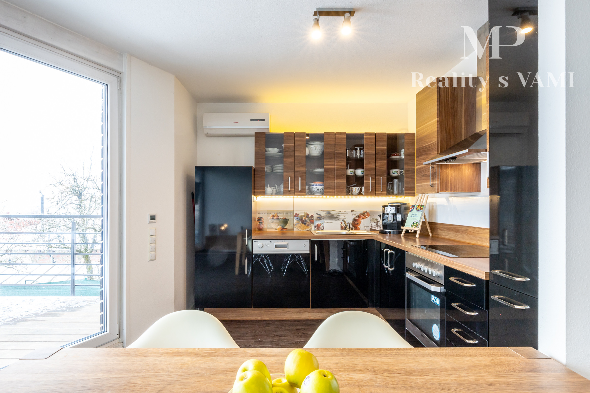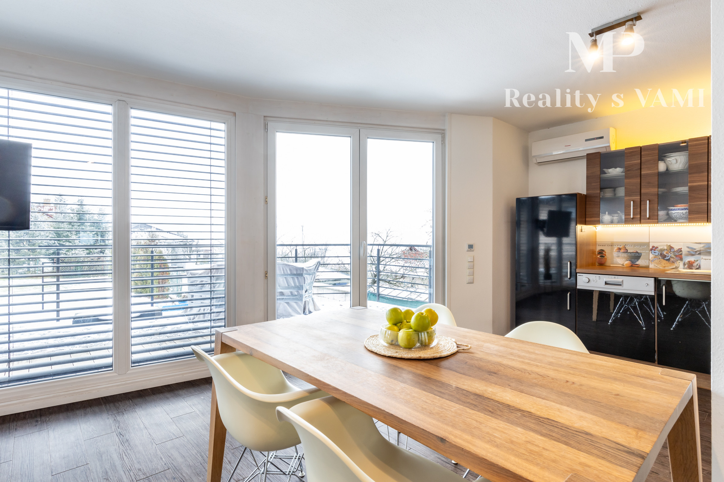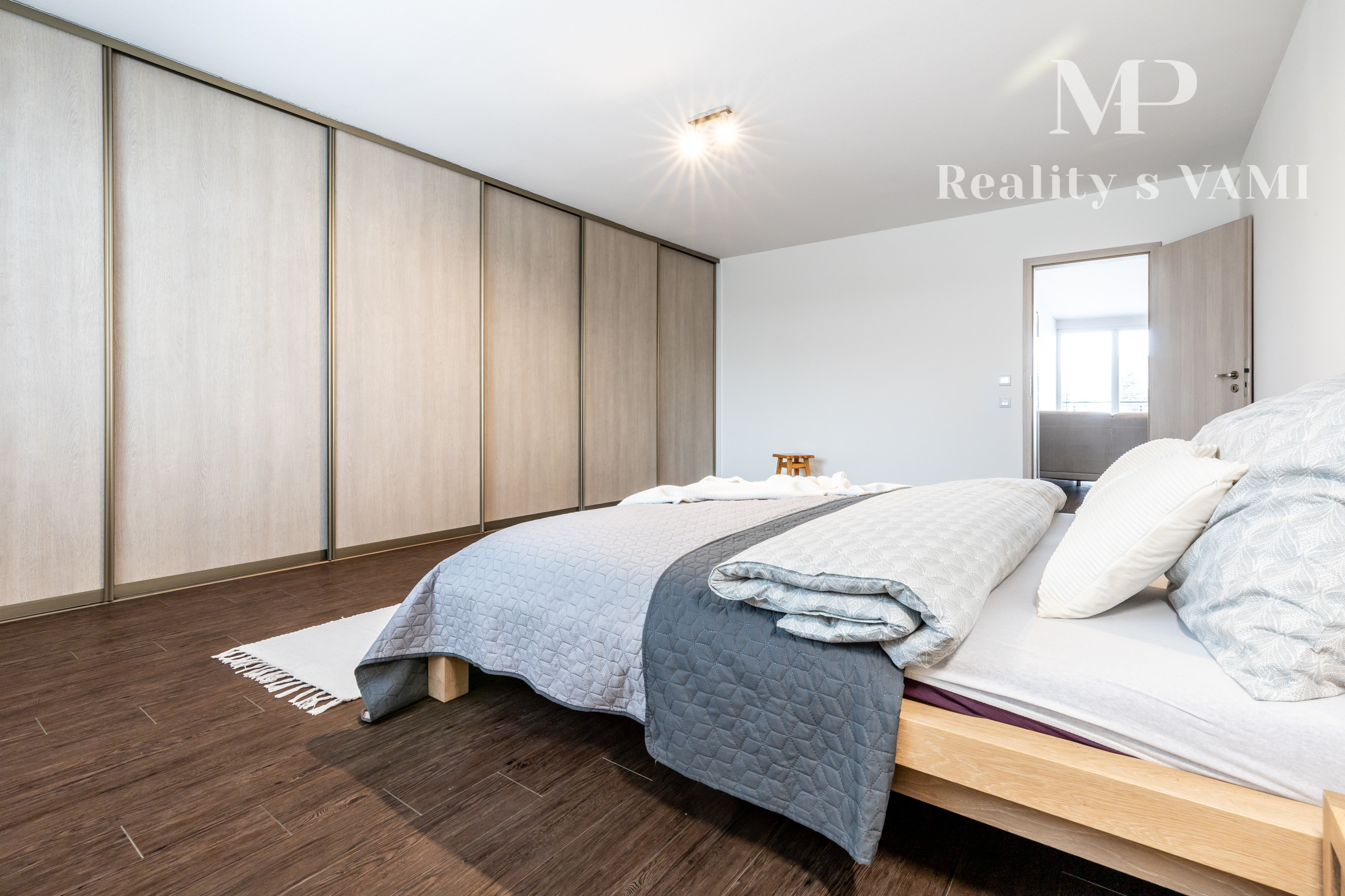 Rodinný dom je 3 izbový, s obytnou plochou 90 m², pričom zastavaná plocha vrátane terasy predstavuje 148 m². Pozostáva z priestrannej haly prepojenej s kuchyňou a jedálenským kútom, dvoch samostatných spální a kúpeľne s toaletou. Pozemok má rozlohu 884 m² a je kompletne oplotený a upravený. Dom je vybavený elektrickým podlahovým kúrením v každej miestnosti s individuálnym nastavením teploty a 6 komorovými plastovými oknami s trojsklom, ktoré zabezpečujú výbornú tepelnú izoláciu. Súčasťou je elektrická brána a komfortné parkovanie priamo na pozemku. Exteriér dotvára podsvietená terasa, drevené opláštenie Bangkirai a žulové schody, ktoré dodávajú domu nadčasový vzhľad.
