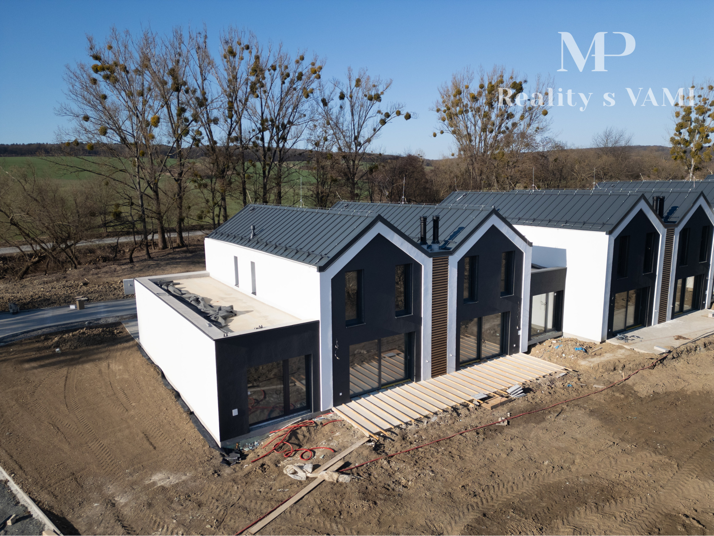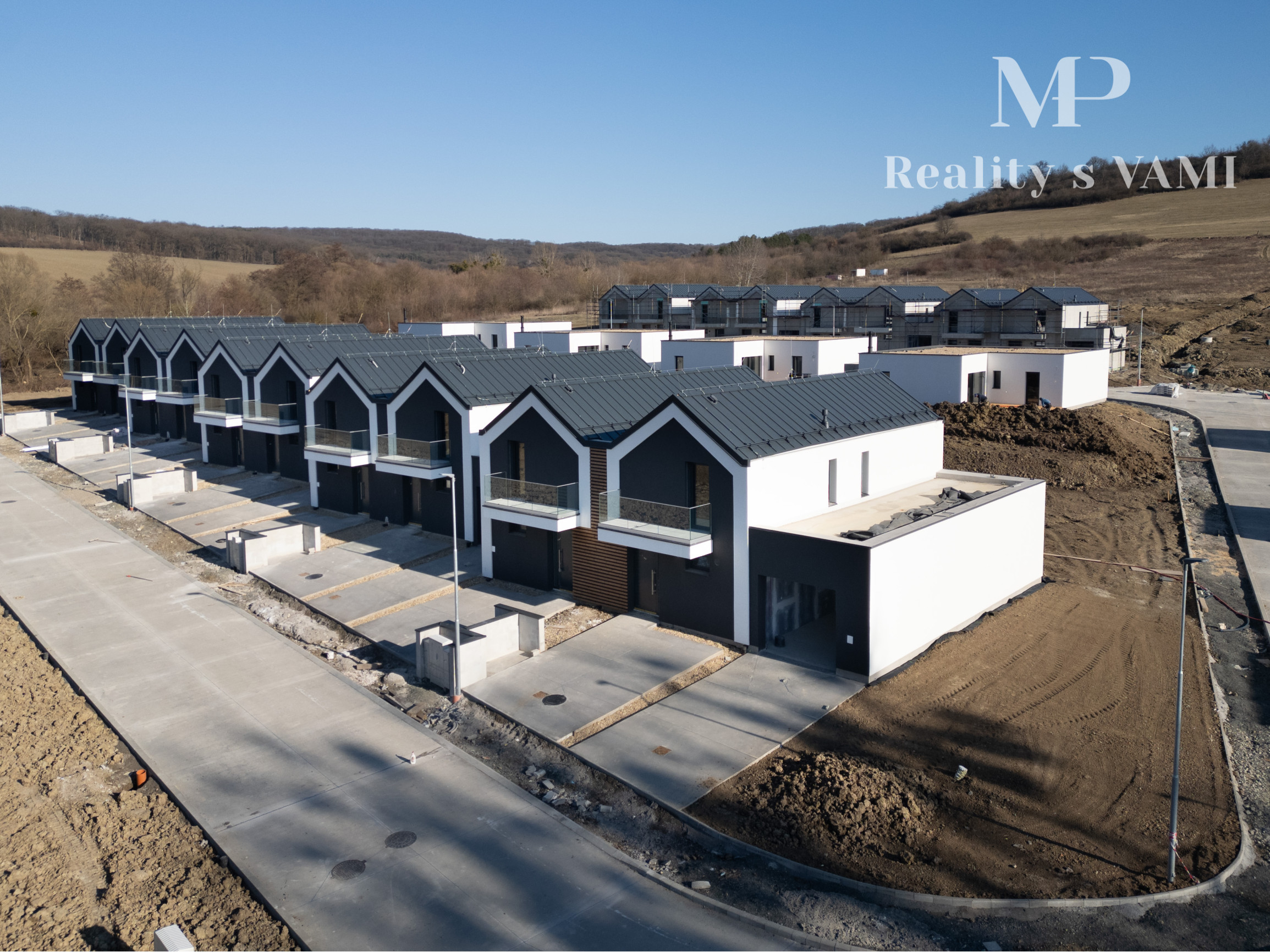 Domy sú postavené z kvalitných vápenno-pieskových tvárnic SILKA a ich strechu tvorí oceľová krytina LINDAB so skrytým odvodnením. Vonkajšie steny zatepľuje 240 mm minerálna vlna ISOVER, plastové okná IGLO5 s izolačným trojsklom a vstupné hliníkové dvere ALURON AS75 garantujú maximálnu úsporu energií a odolnosť. O vykurovanie a prípravu teplej vody sa stará tepelné čerpadlo vzduch – voda s inteligentným ovládaním cez aplikáciu, doplnené podlahovým vykurovaním a centrálnou rekuperáciou vzduchu. Domy sú pripravené vo vyhotovení holodom, s dôrazom na kvalitu použitých materiálov a budúcu personalizáciu interiéru.