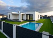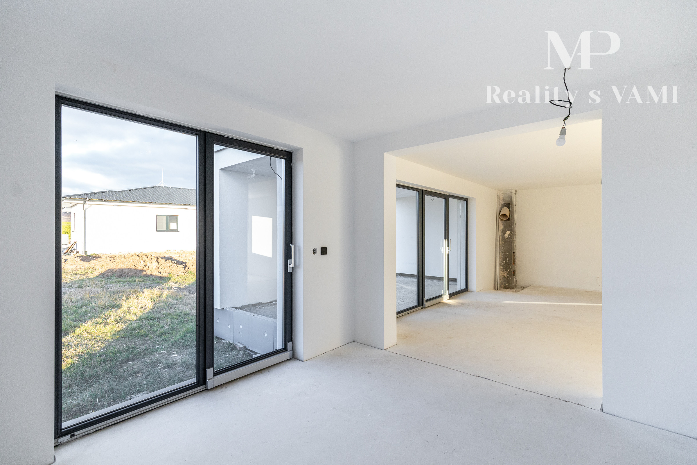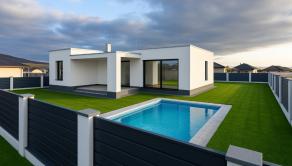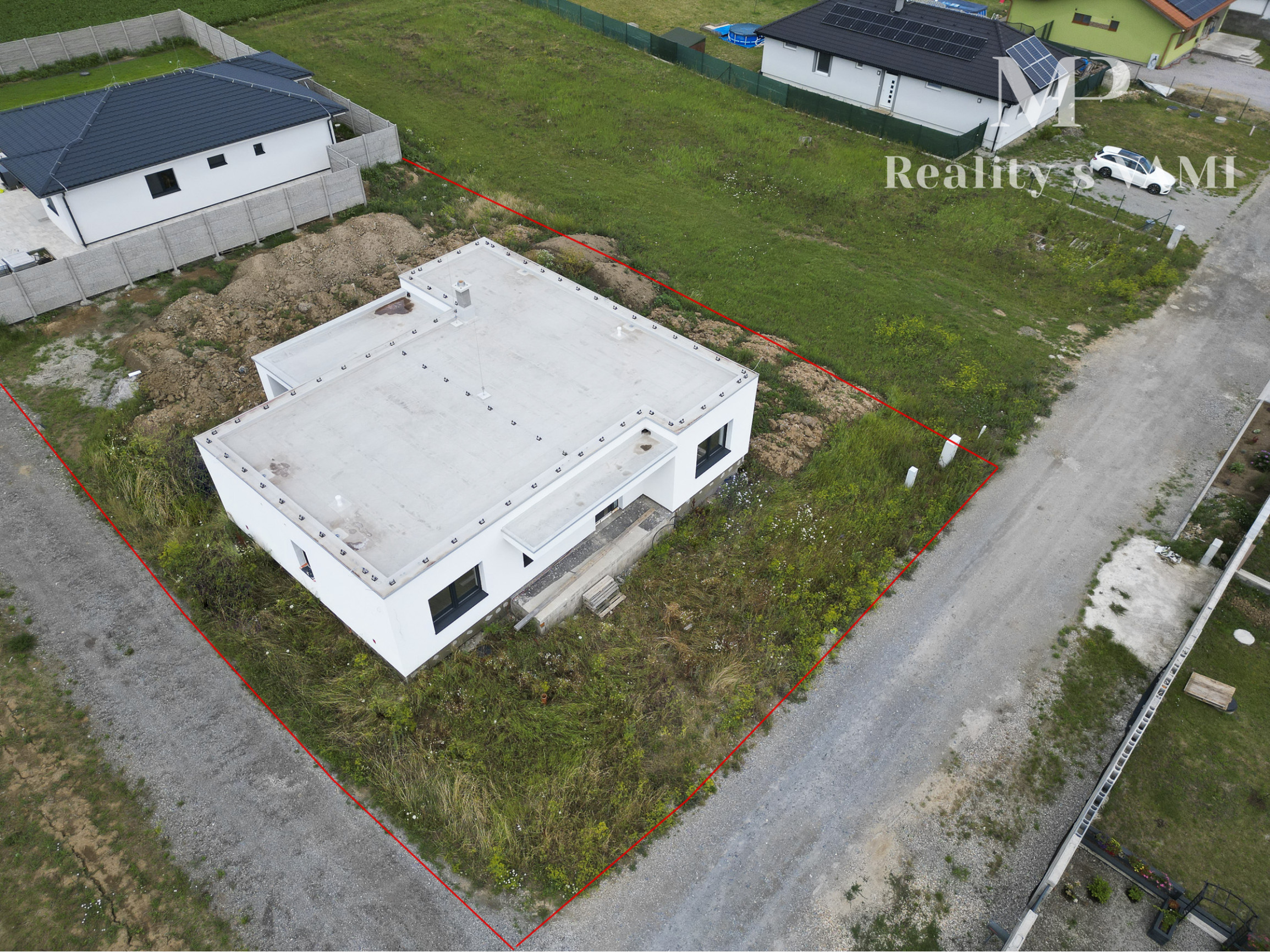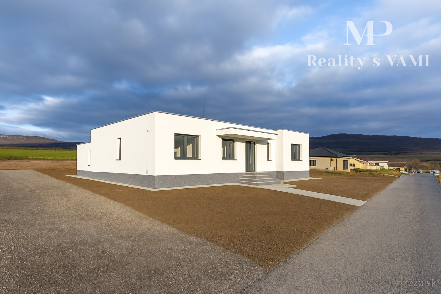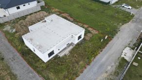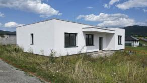 Tento moderný bungalov je postavený z kvalitného stavebného materiálu Ytong s hrúbkou 25 cm, pričom celý dom je zateplený izoláciou s hrúbkou 20 cm. V nehnuteľnosti sú osadené plastové okná s dvojsklom značky ALUPLAST, ktoré zabezpečujú výbornú tepelnú izoláciu. Vykurovanie je podlahové elektrické s inteligentným termostatom v každej miestnosti. V obývacej miestnosti je predpríprava na krb s komínom zn. SCHIEDEL. Omietky sú sádrove a poter anhydridový v celom dome. Strecha je plochá a pokrytá fóliou Fatrafol, čo garantuje jej dlhú životnosť a odolnosť. Dom je napojený na inžinierske siete, konkrétne na vodu a elektrinu, a je pripravený na pripojenie čističky odpadových vôd alebo žumpy. Celková zastavaná plocha domu je 200 m², pričom obytná plocha predstavuje 150 m².