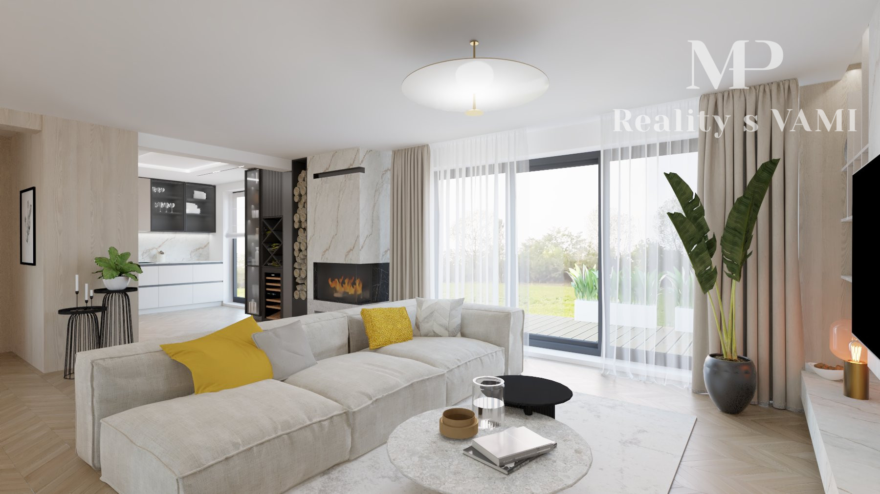 Bungalov je navrhnutý tak, aby poskytoval maximálny komfort a praktickosť pre celú rodinu. Denná časť pozostáva z priestrannej obývacej izby prepojenej s kuchyňou a jedálňou, z ktorej je priamy výstup na zastrešenú terasu s rozlohou 22 m². Nočnú časť tvoria hlavná spálňa so šatníkom a dve priestranné detské izby. Dom má dve kúpeľne s toaletami, ktoré zabezpečia dostatok komfortu pre všetkých členov domácnosti. Súčasťou dispozície je aj technická miestnosť a zastrešené zádverie s výmerou 15 m². K domu je možné vybudovanie prístrešku pre auto.