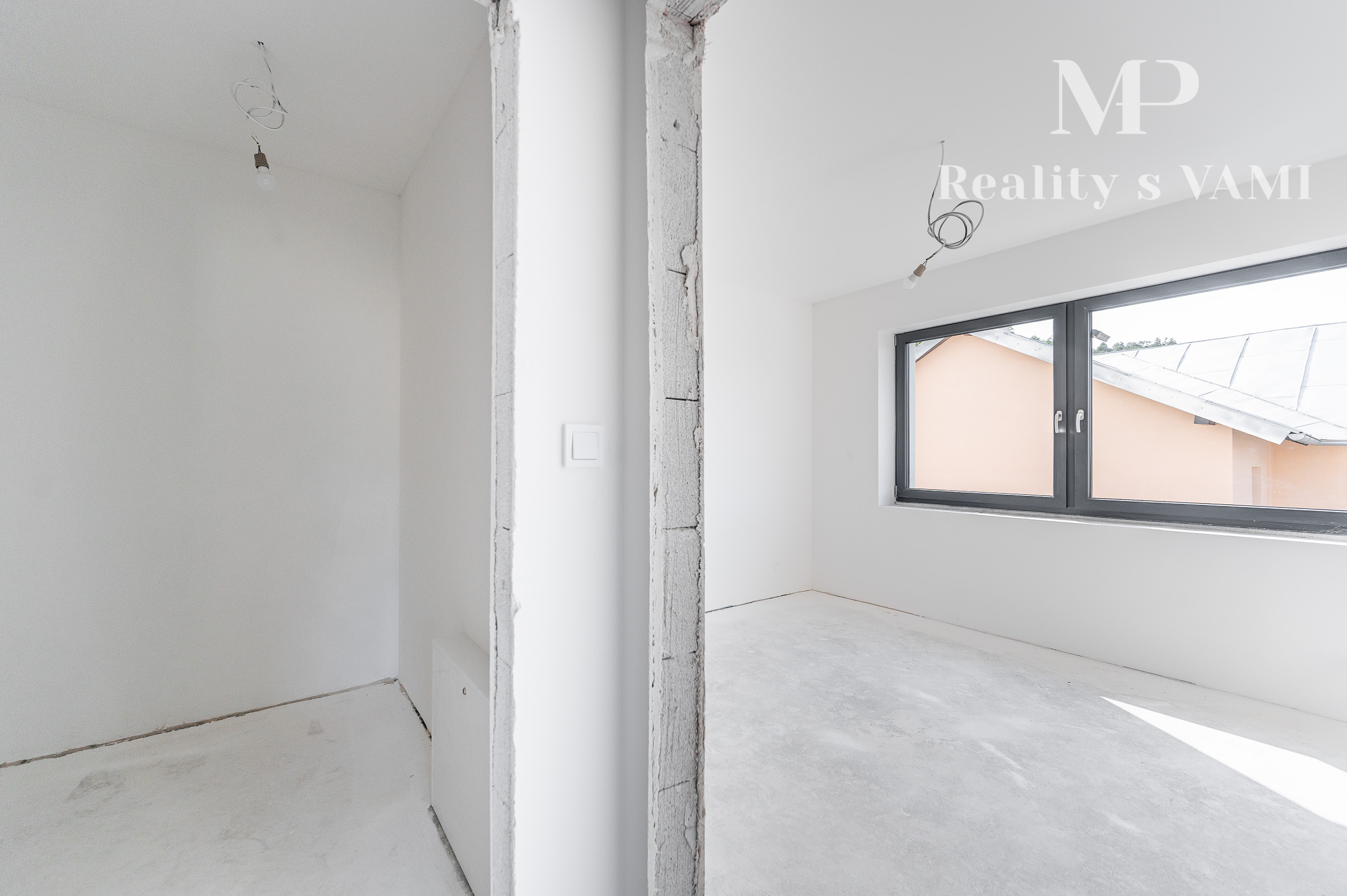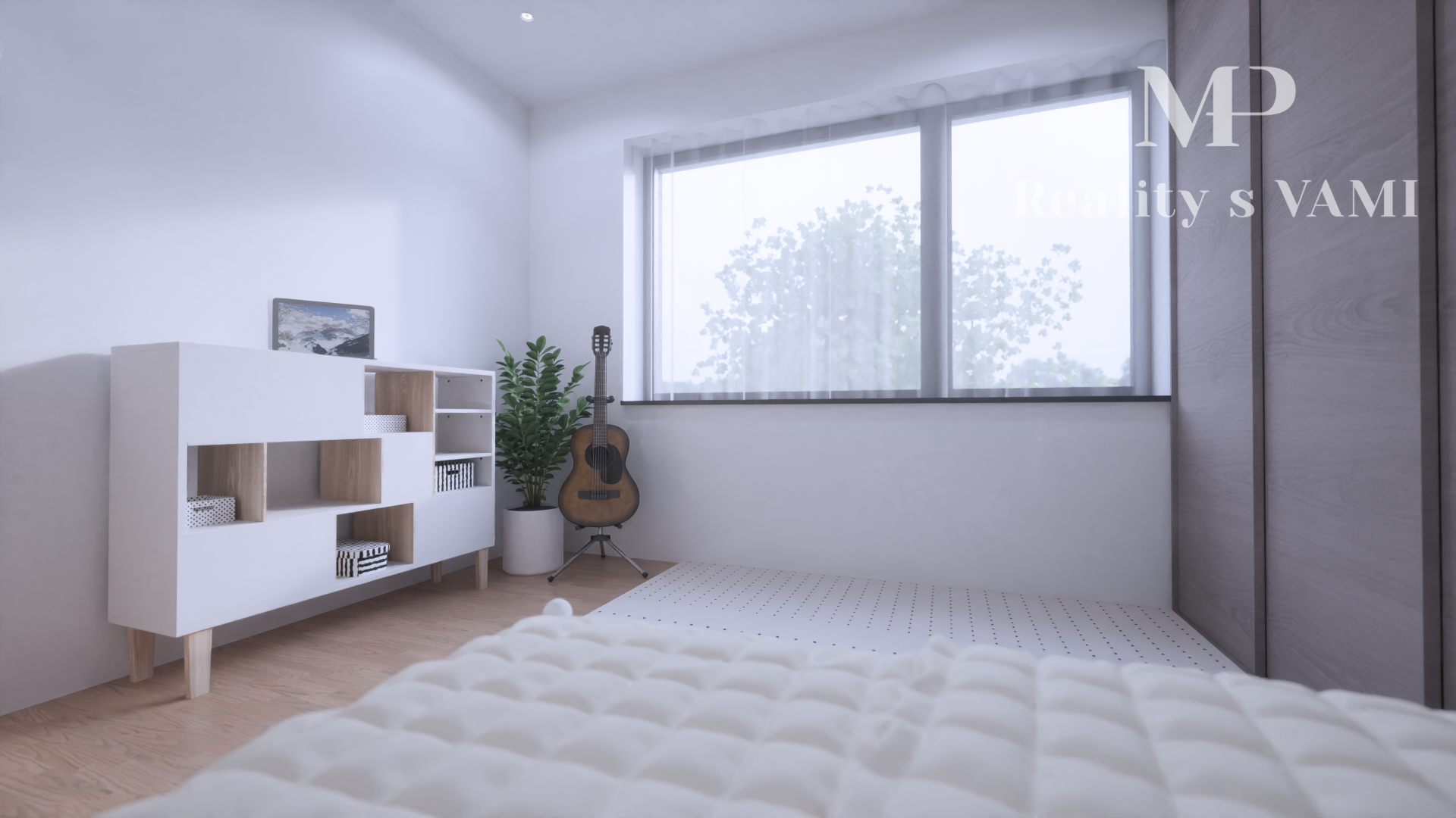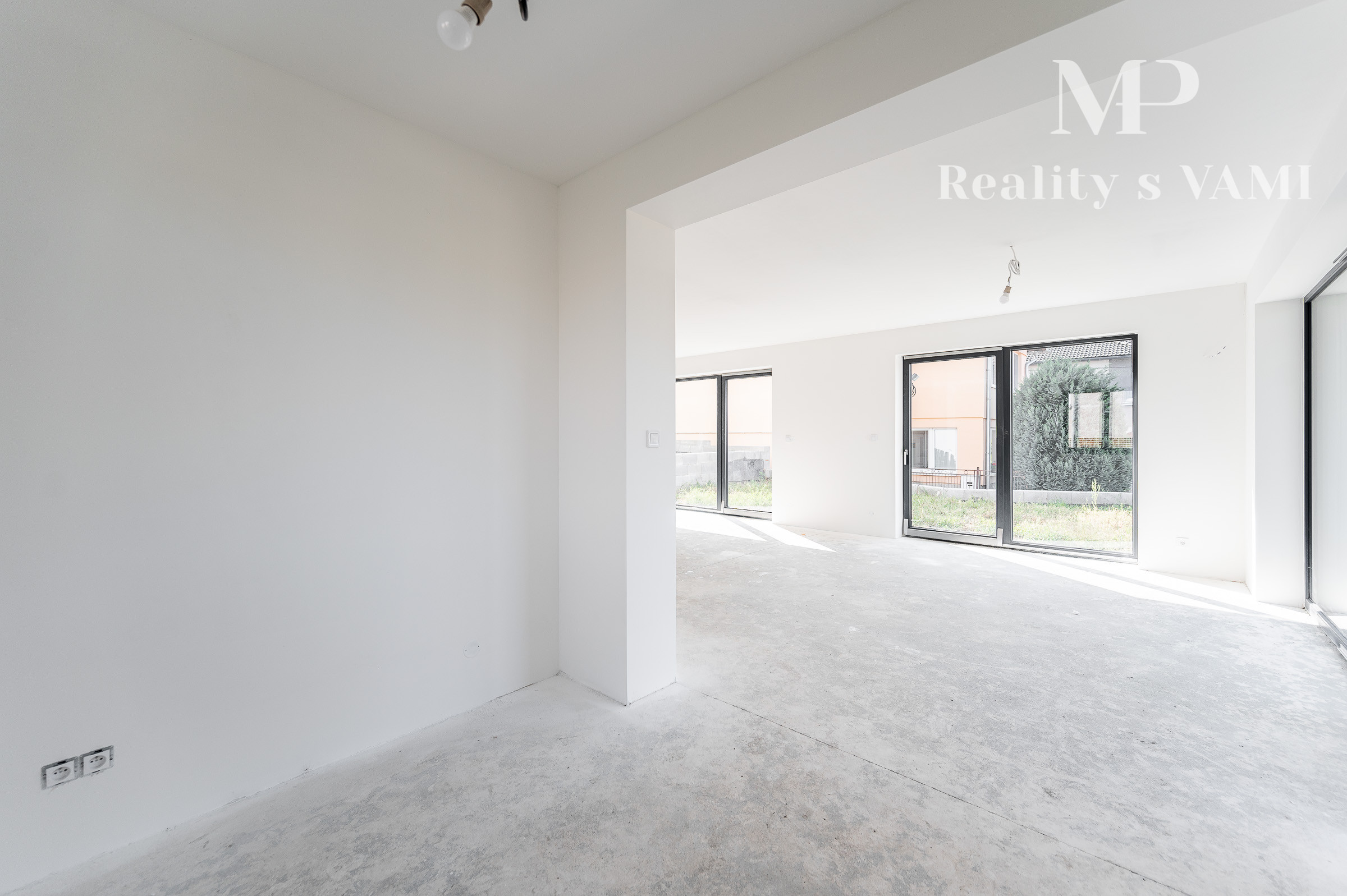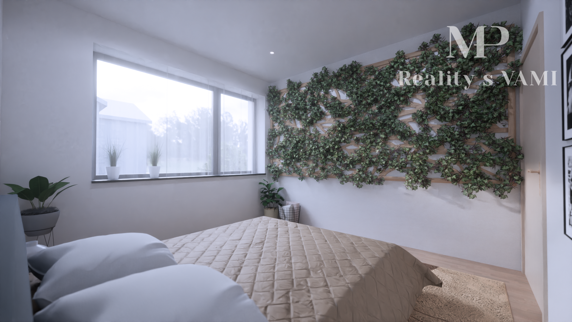 V dome vás na prízemí víta vstupná chodba a následne otvorená dispozícia obývačky, kuchyne a jedálne, z ktorej je priamy výstup na terasu a do záhrady. Tento priestor je navrhnutý na každodenné pohodlie a spoločné chvíle. Na druhom podlaží nájdete dve detské izby, hlavnú spálňu, šatník, dve kúpeľne a praktické zázemie domu. Každý meter tu má svoje využitie a výsledkom je funkčný, presvetlený a moderný interiér.