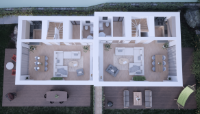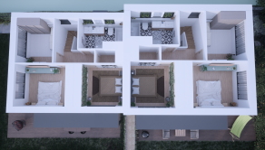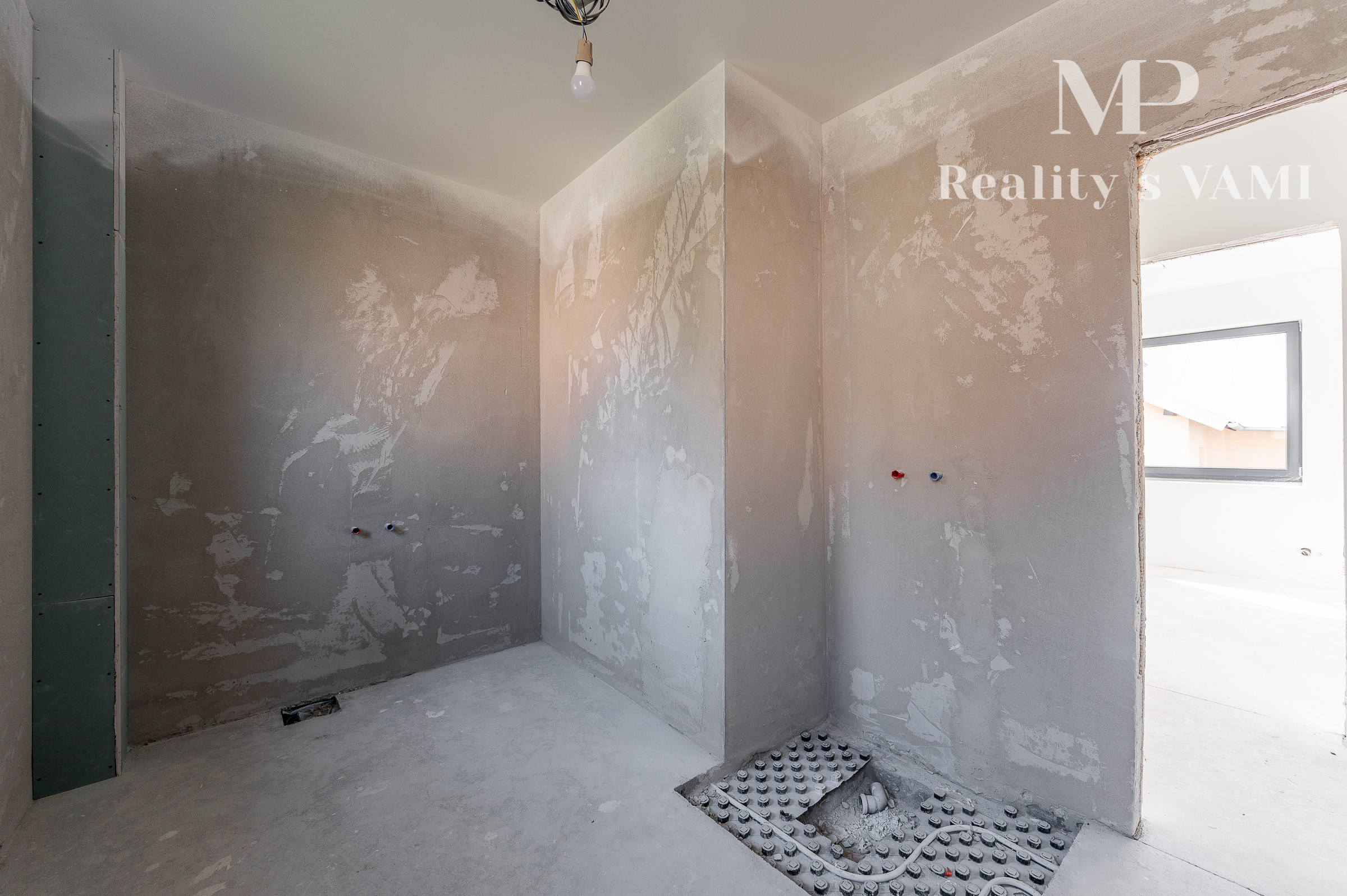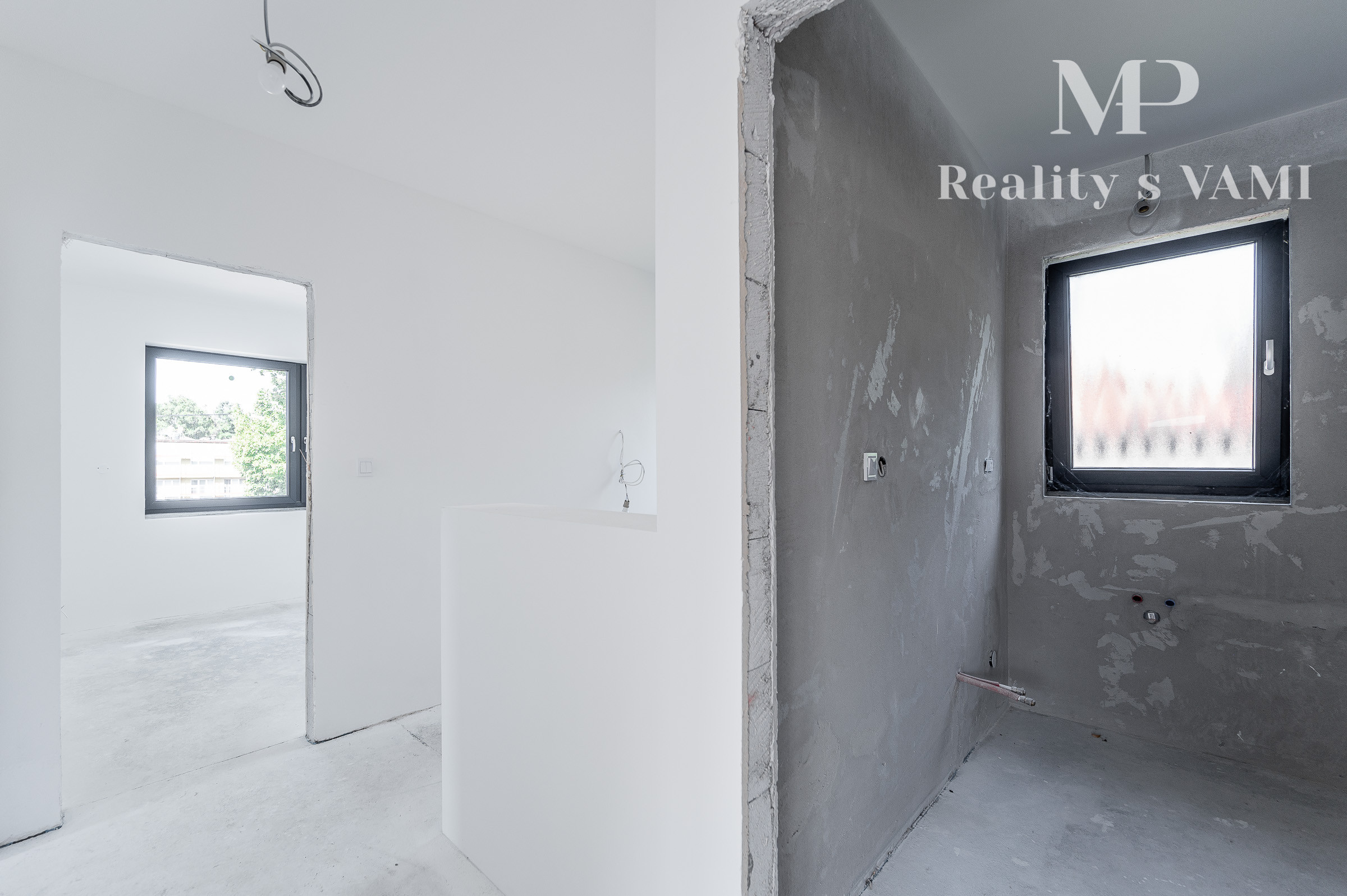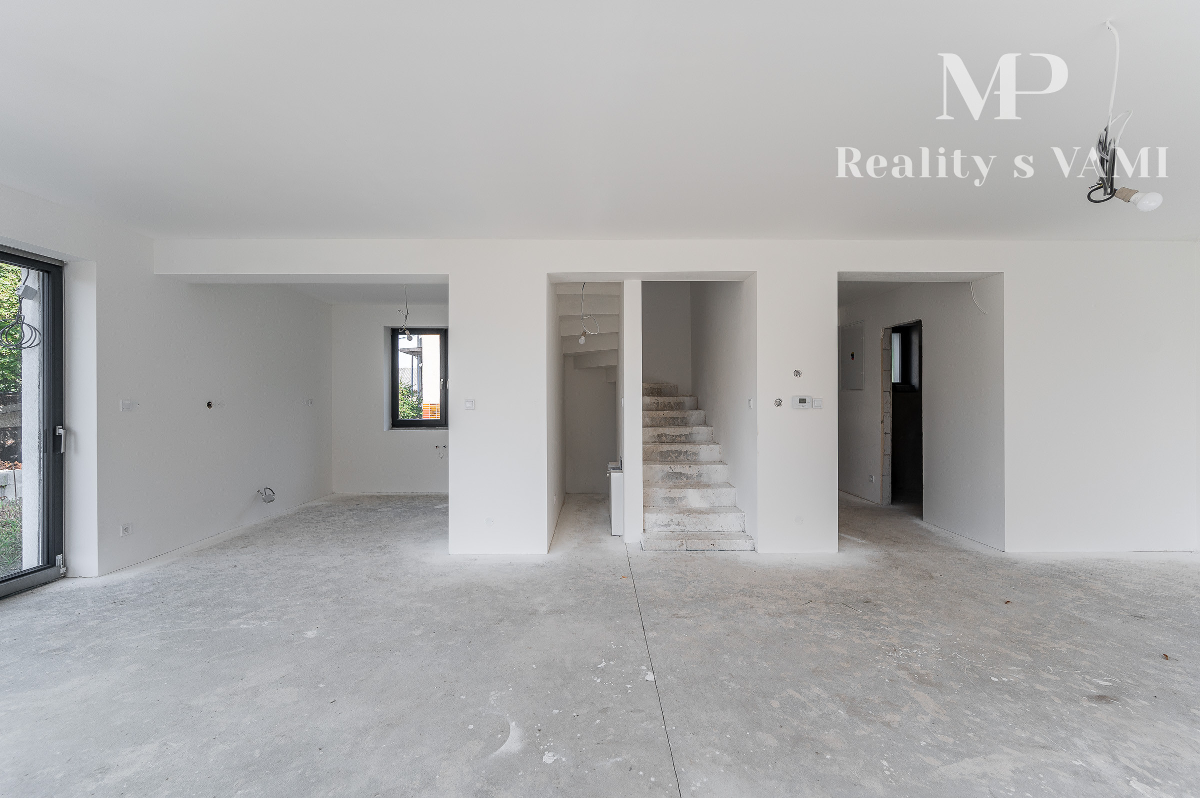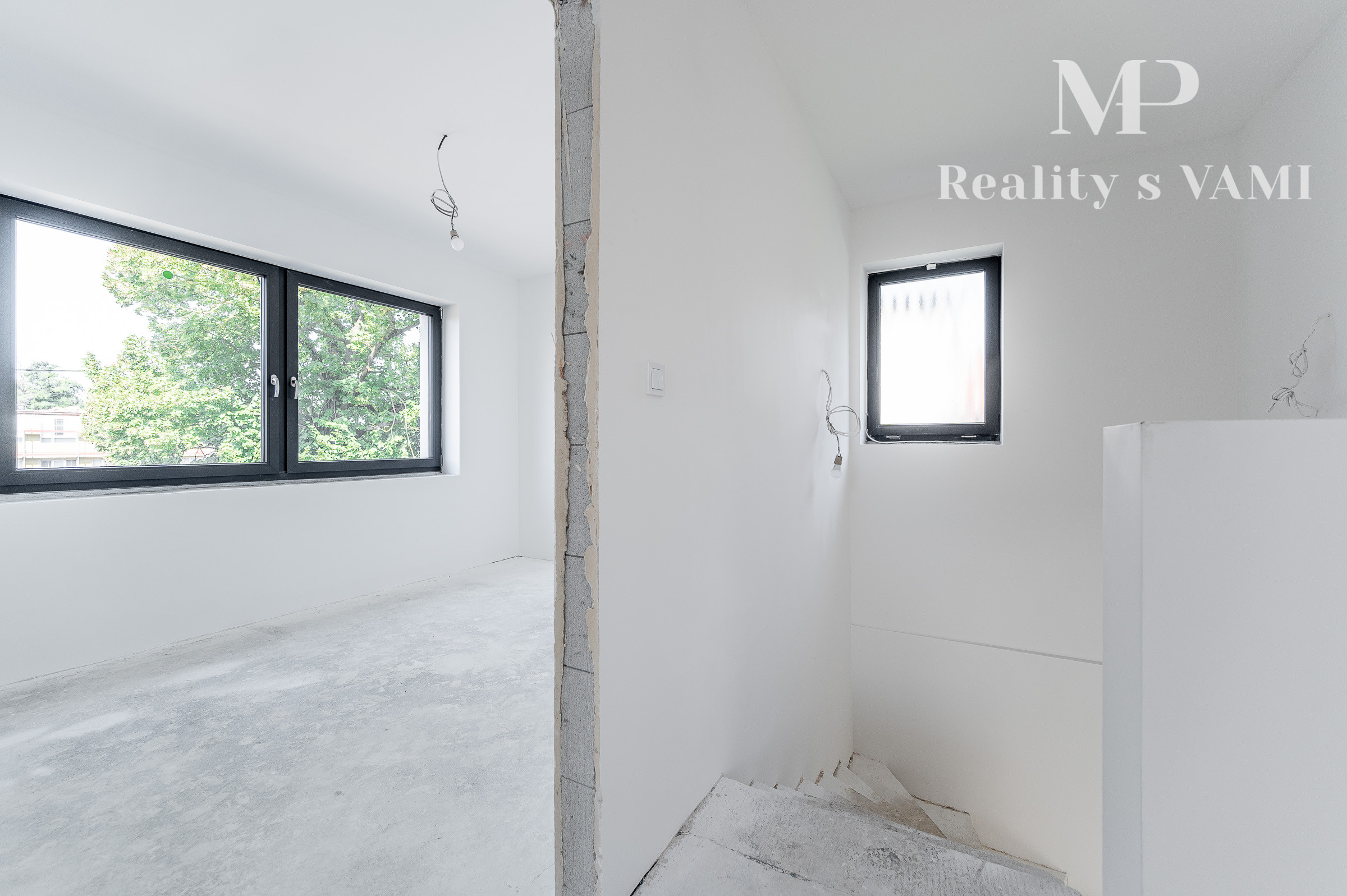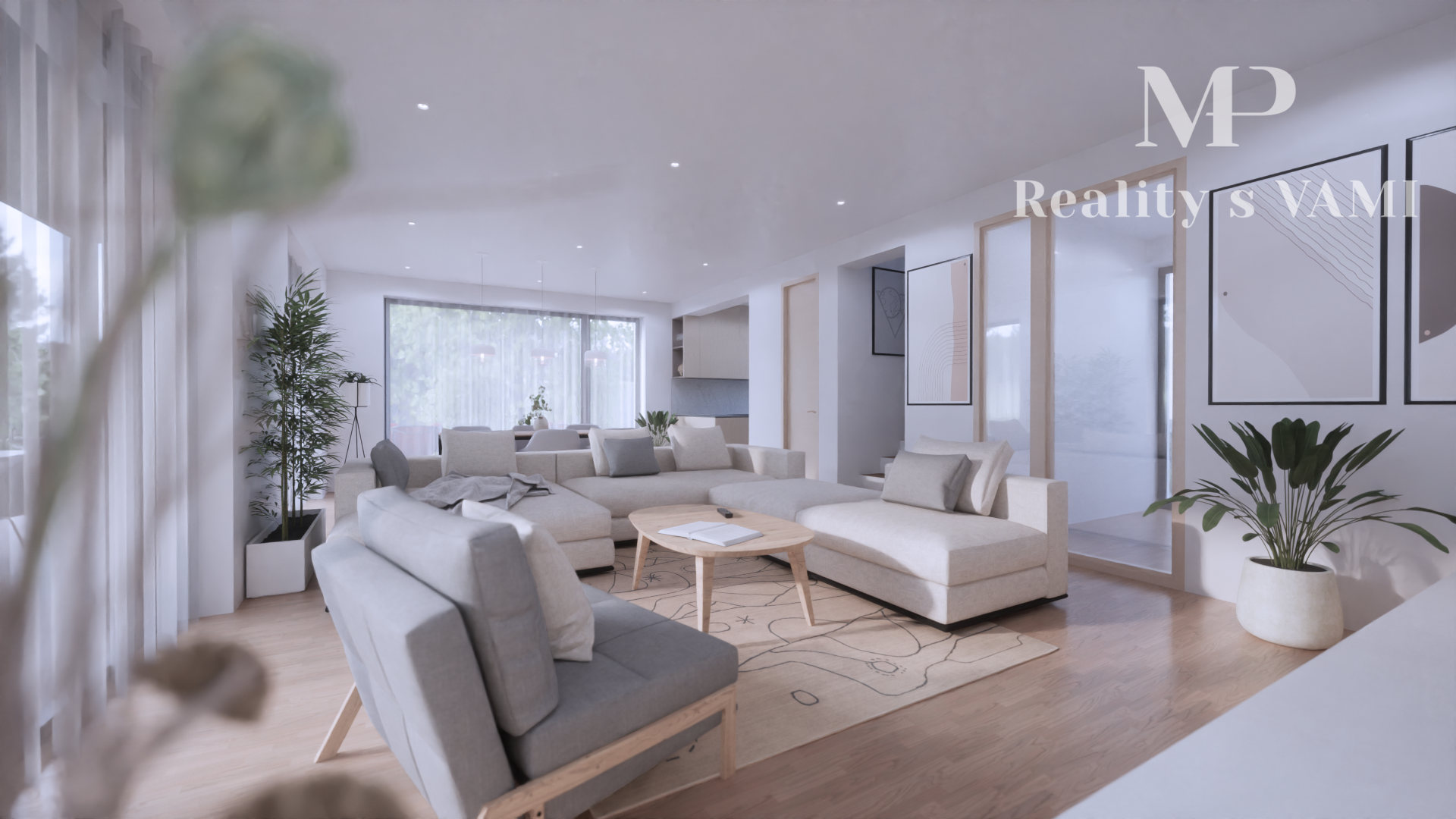 V dome vás na prízemí víta vstupná chodba a následne otvorená dispozícia obývačky, kuchyne a jedálne, z ktorej je priamy výstup na terasu a do záhrady. Tento priestor je navrhnutý na každodenné pohodlie a spoločné chvíle. Na druhom podlaží nájdete dve detské izby, hlavnú spálňu, šatník, dve kúpeľne a praktické zázemie domu. Každý meter tu má svoje využitie a výsledkom je funkčný, presvetlený a moderný interiér.
