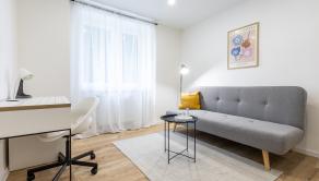 Tento moderný byt s balkónom o výmere 56 m² sa nachádza na 2. poschodí a svojou premyslenou dispozíciou poskytuje komfortné bývanie pre jednotlivca, pár alebo mladú rodinu. Byt prešiel kompletnou novou rekonštrukciou a prenajíma sa plne zariadený novým nábytkom a spotrebičmi. Samozrejmosťou je klimatizácia, čo oceníte najmä počas letných mesiacov. V cene nájmu je zahrnutý internet aj TV.