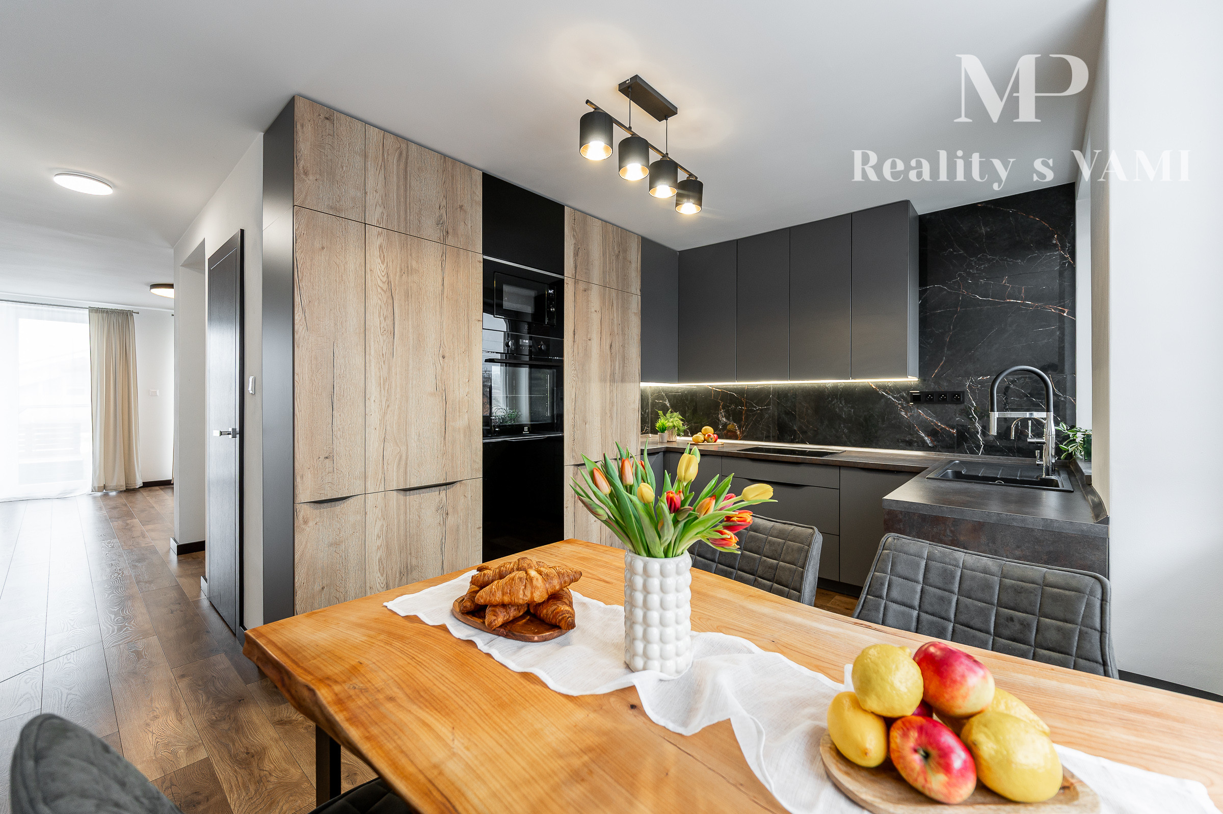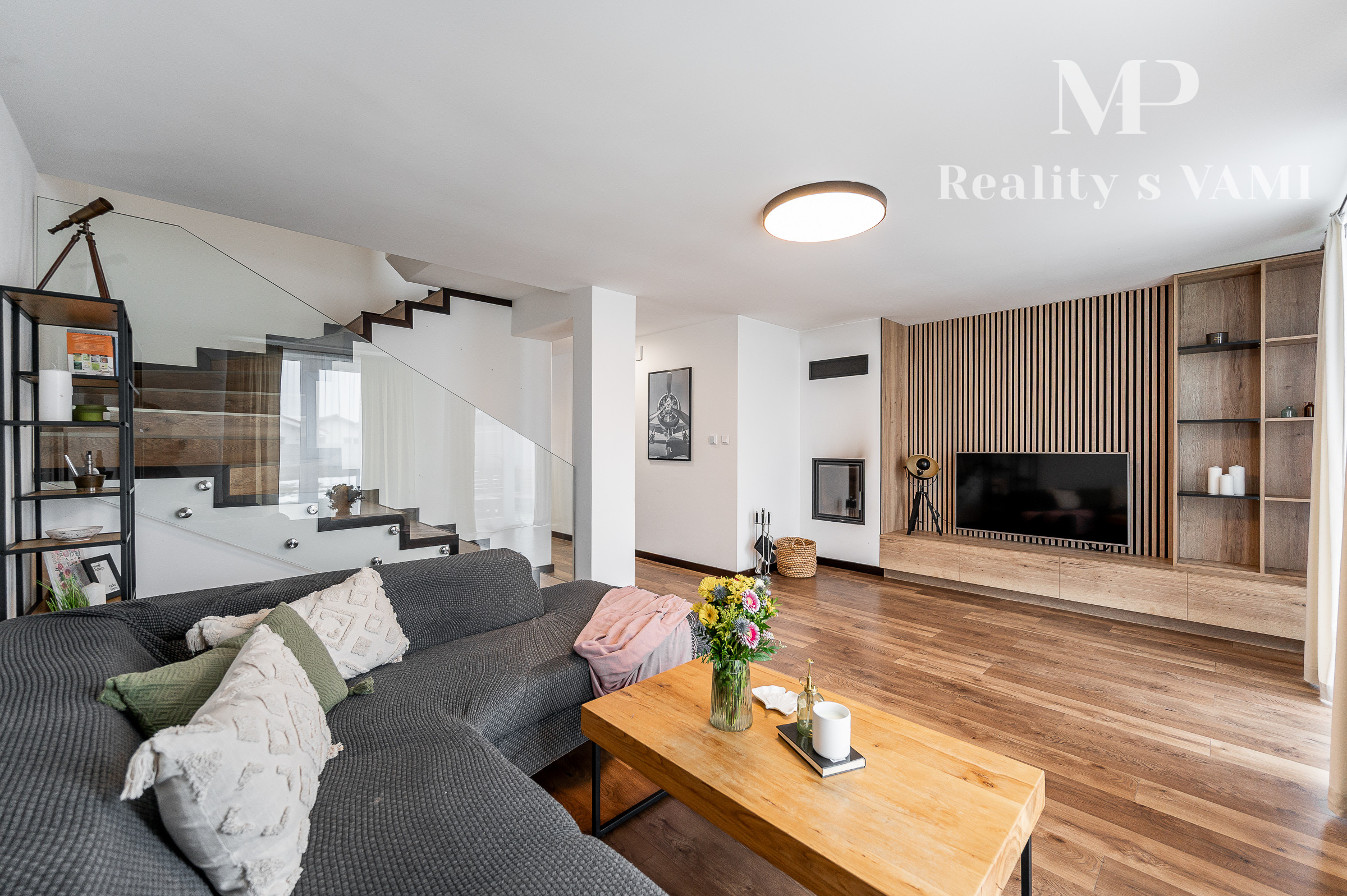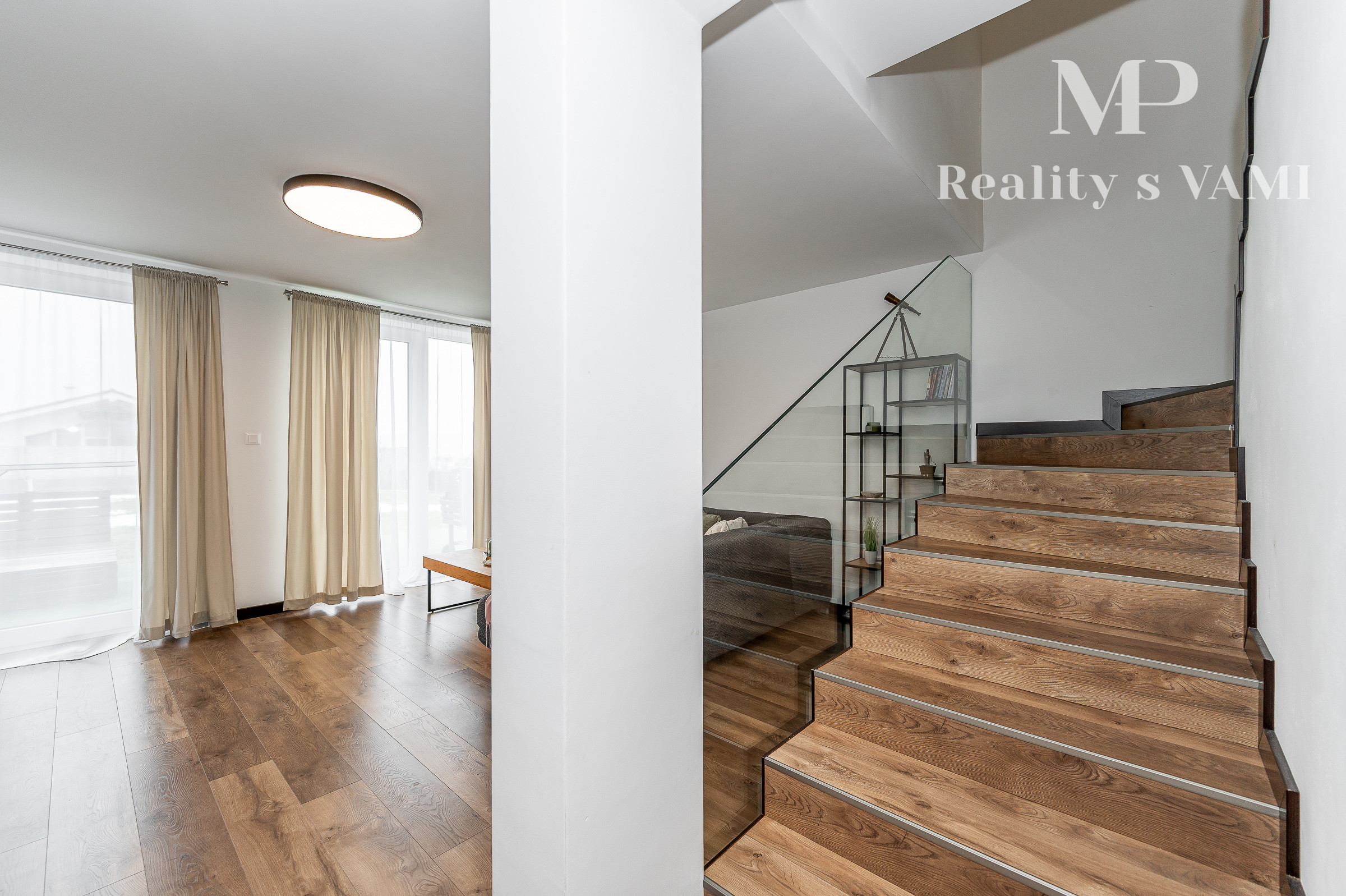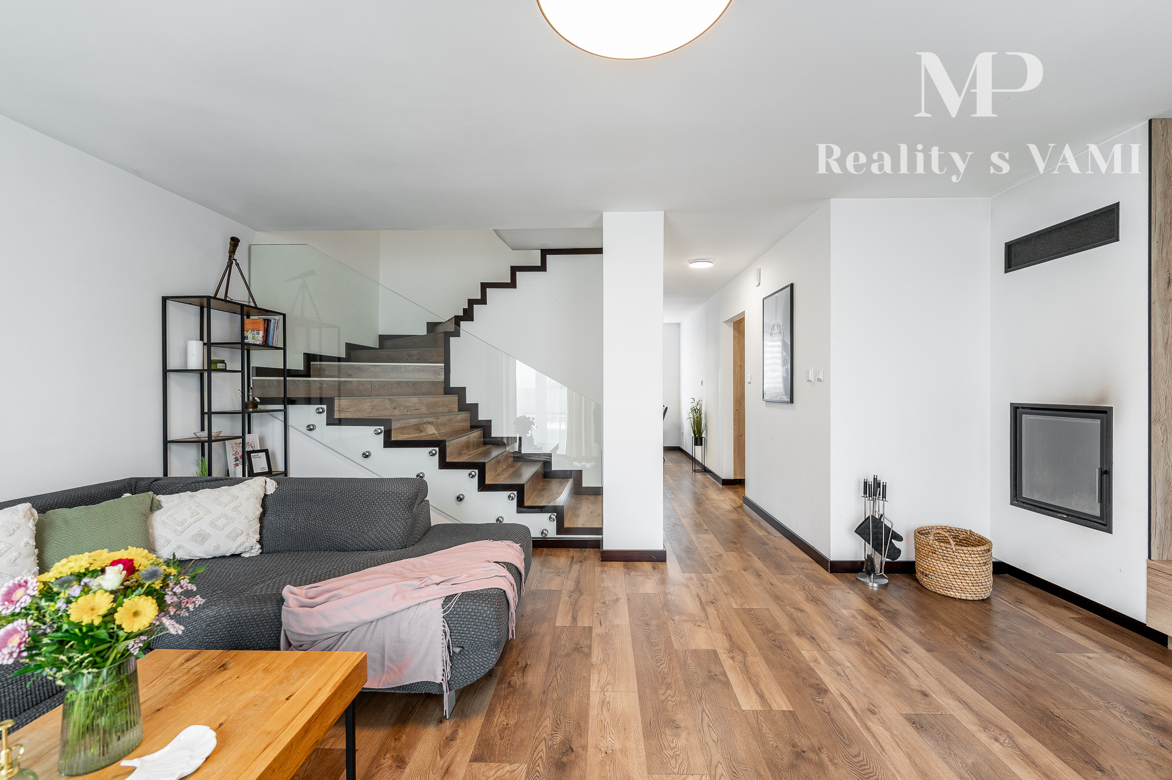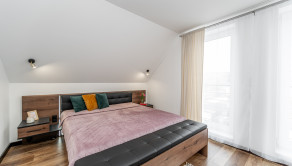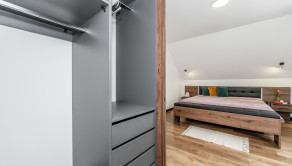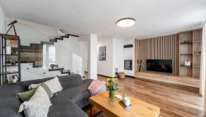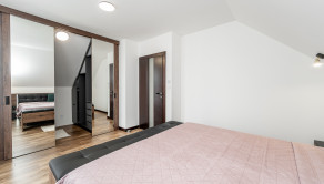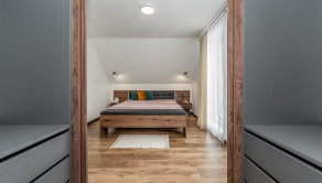 Na prízemí domu sa nachádza príjemná denná časť, nachádza sa tu kuchyňa s jedálenskou časťou, obývacia izba s krbom a s výstupom na priestrannú terasu ktorá prirodzene rozširuje obytný priestor domu a vytvára ideálne miesto na letné posedenia či rodinné obedy. Kuchyňa je vyhotovená na mieru a ponúka dostatok pracovnej plochy aj úložných priestorov. Plynulo nadväzuje na obývaciu izbu, ktorá je centrom rodinného života a vytvára príjemnú atmosféru na oddych aj spoločné chvíle. Na prízemí sa nachádza aj samostatná toaleta a technická miestnosť. Na druhom podlaží sa nachádza hlavná spálňa s vlastním šatníkom a dve ďalšie izby, ktoré môžu slúžiť ako detské izby, pracovňa alebo hosťovská izba. Súčasťou podlažia je aj kúpeľňa s vaňou, ktorá poskytuje komfort a dostatok priestoru pre každodenné fungovanie rodiny.