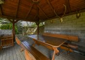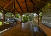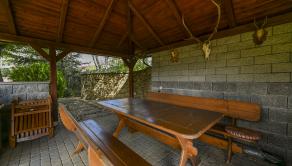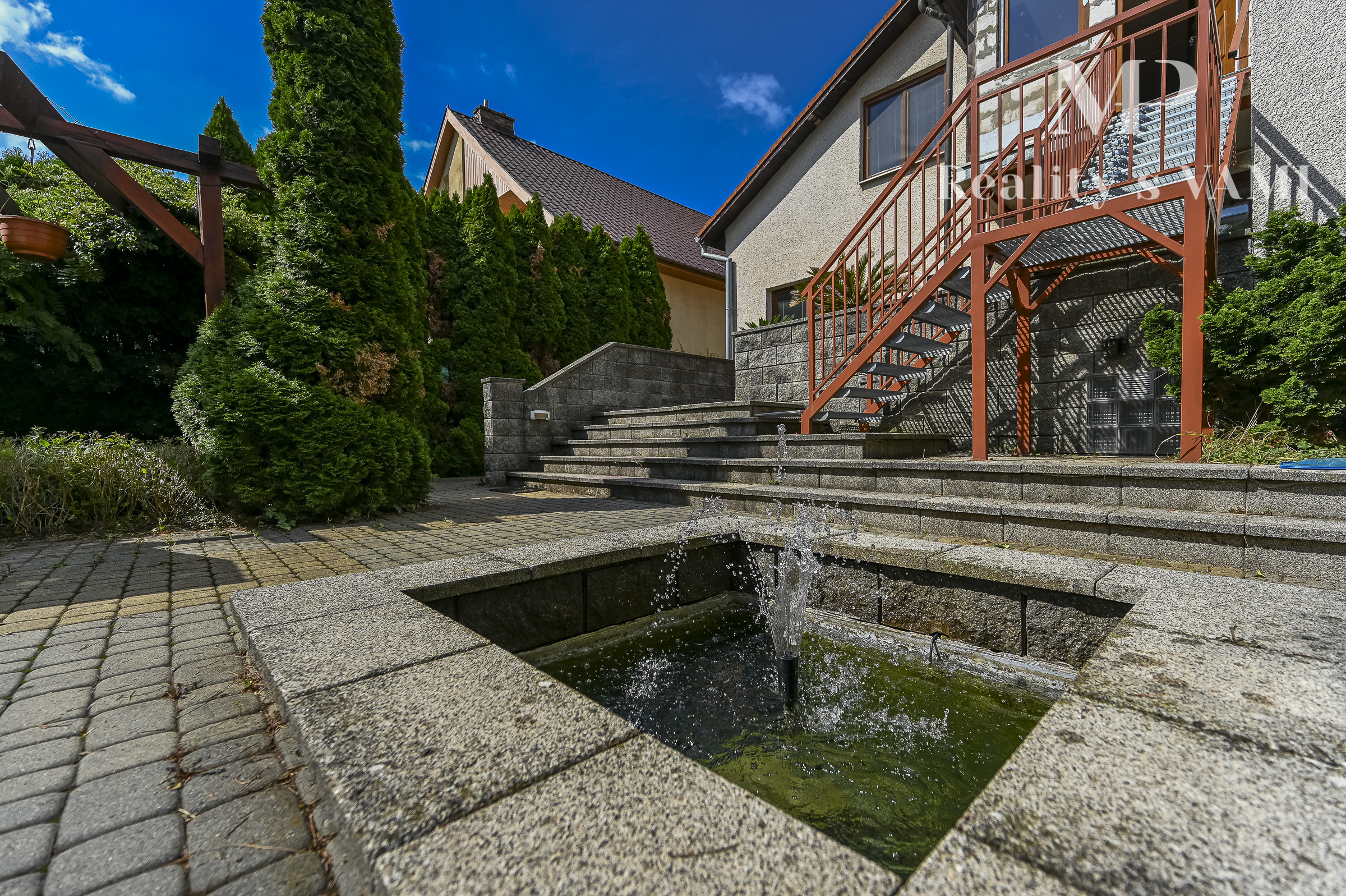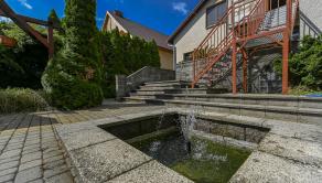- altánok, fontána a upravená záhrada s okrasnými drevinami