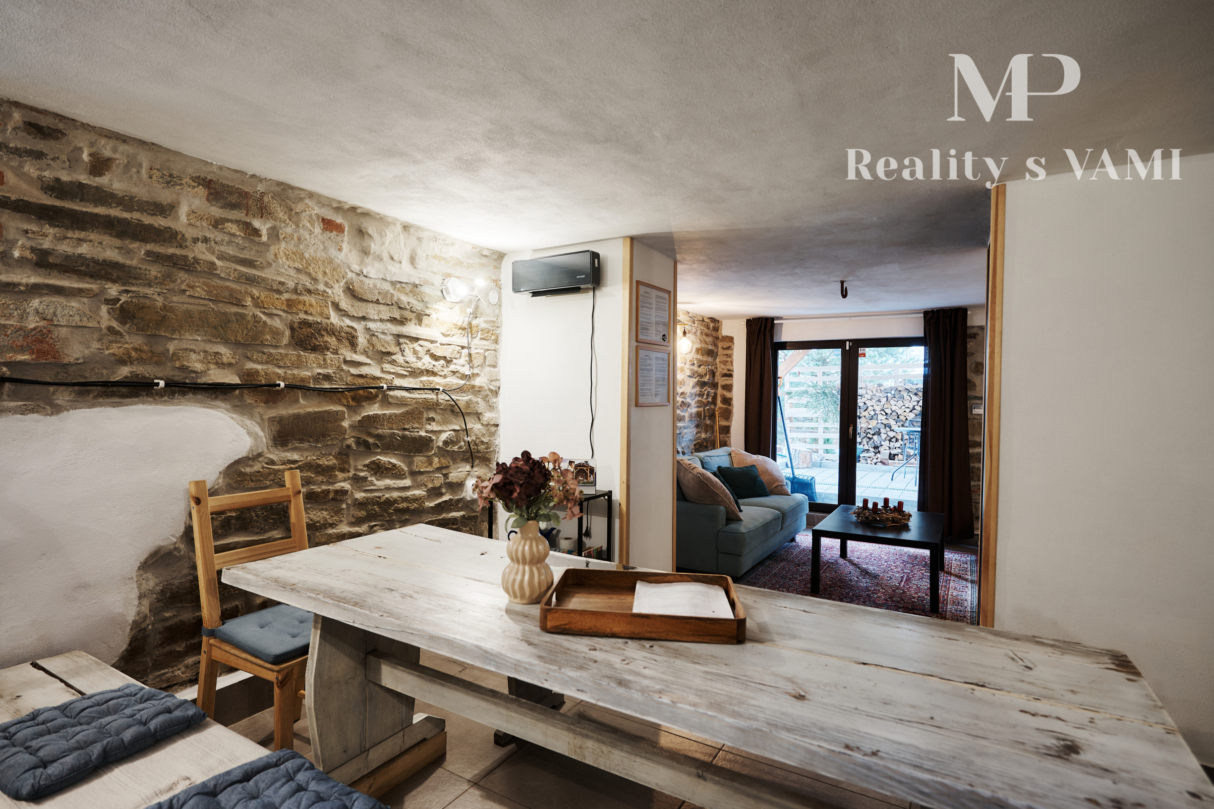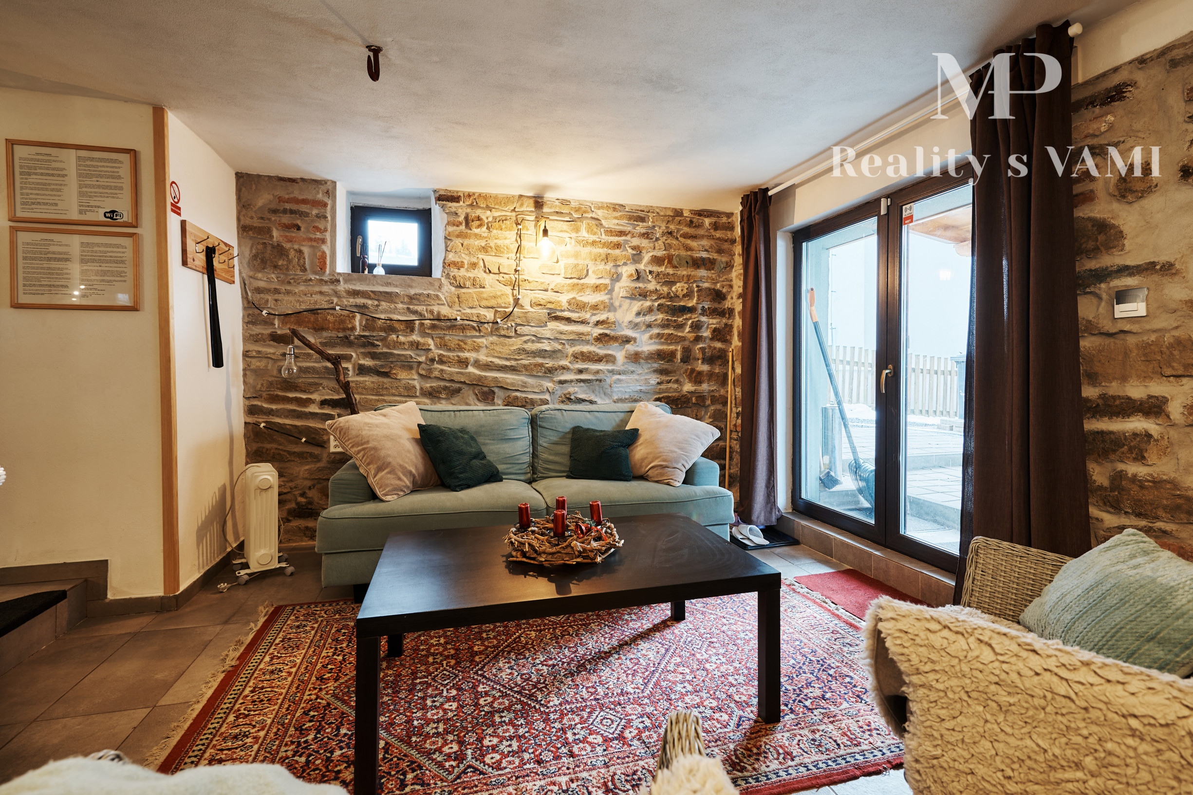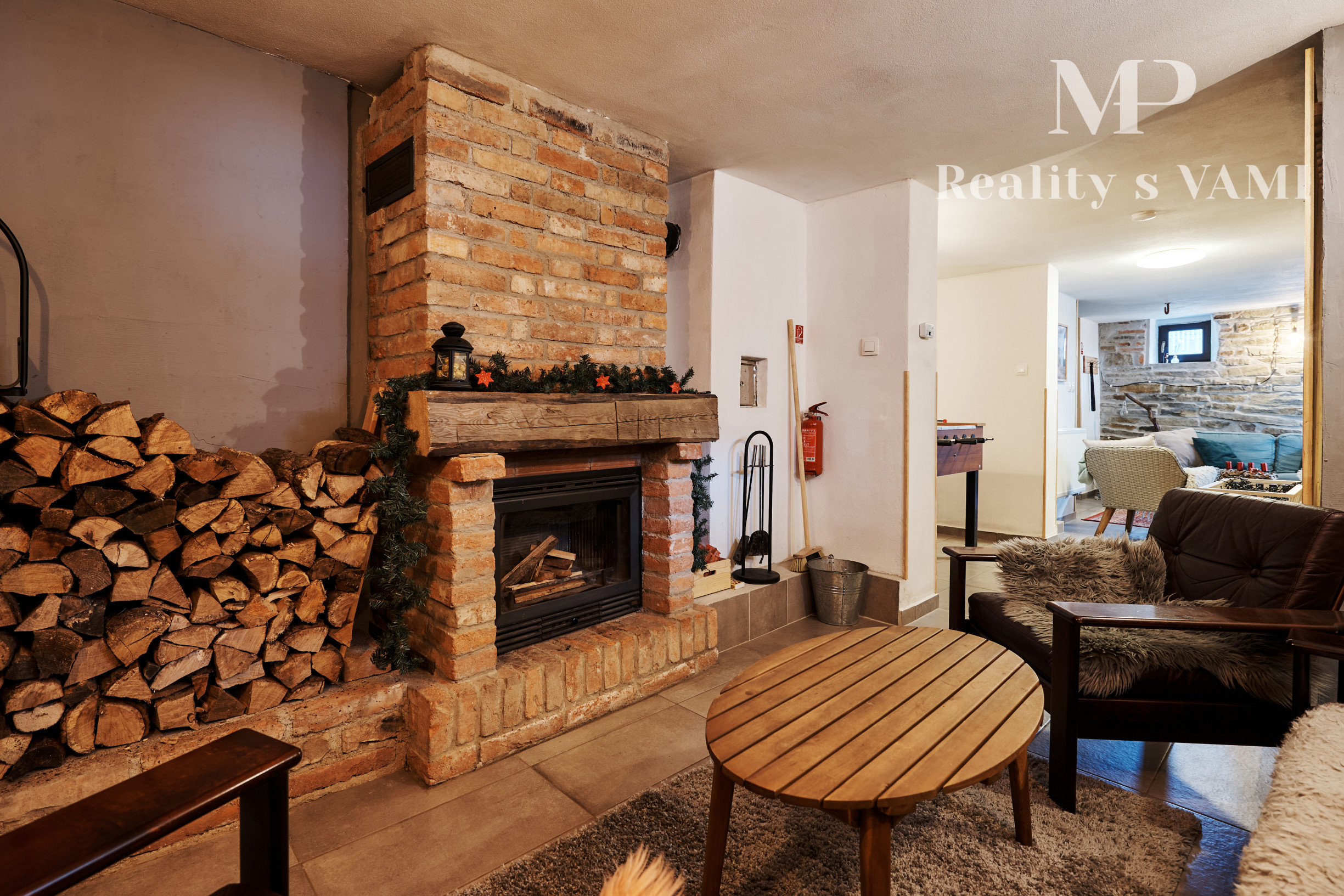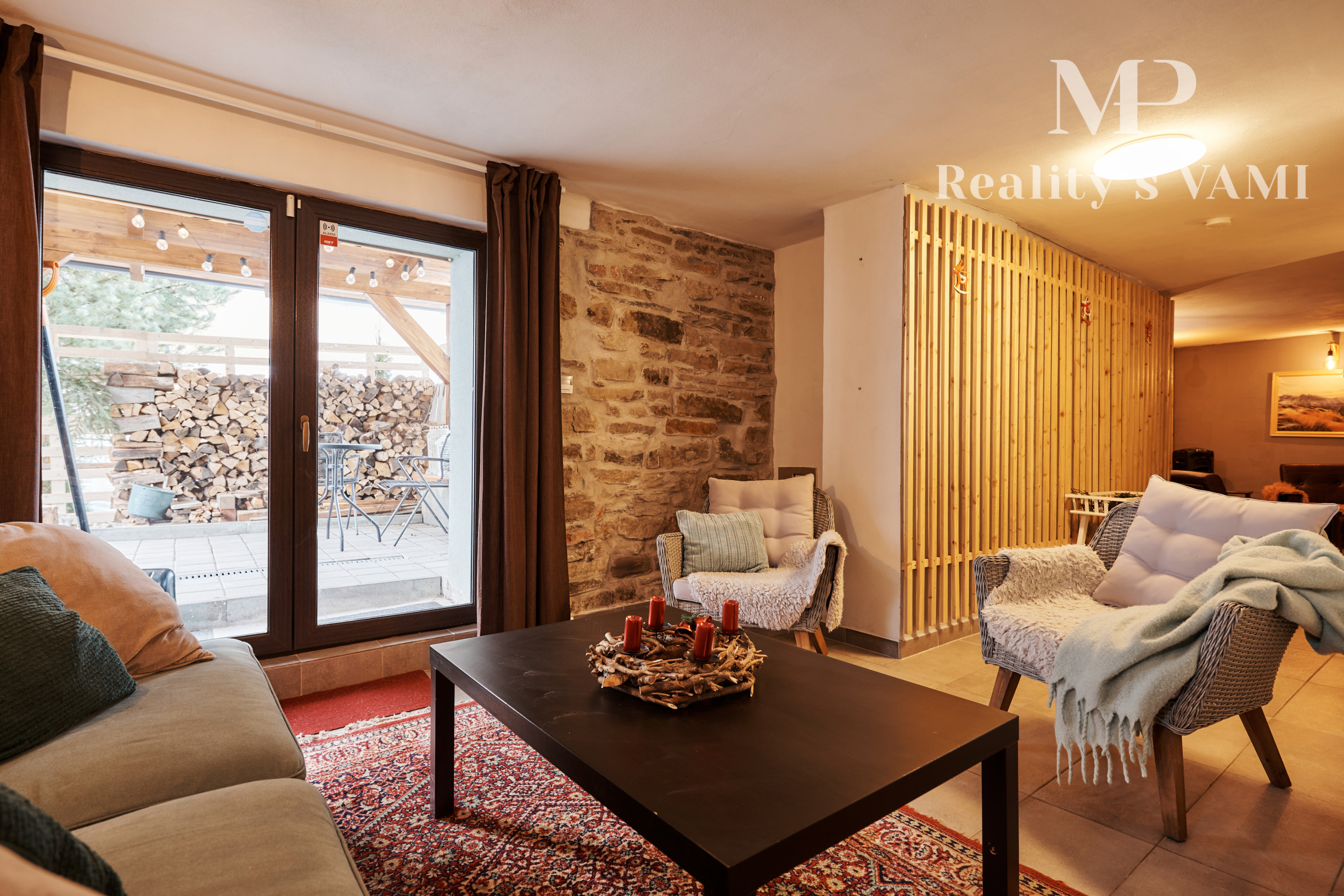 - veľká spoločenská miestnosť s krbom, z ktorej je výstup na terasu,