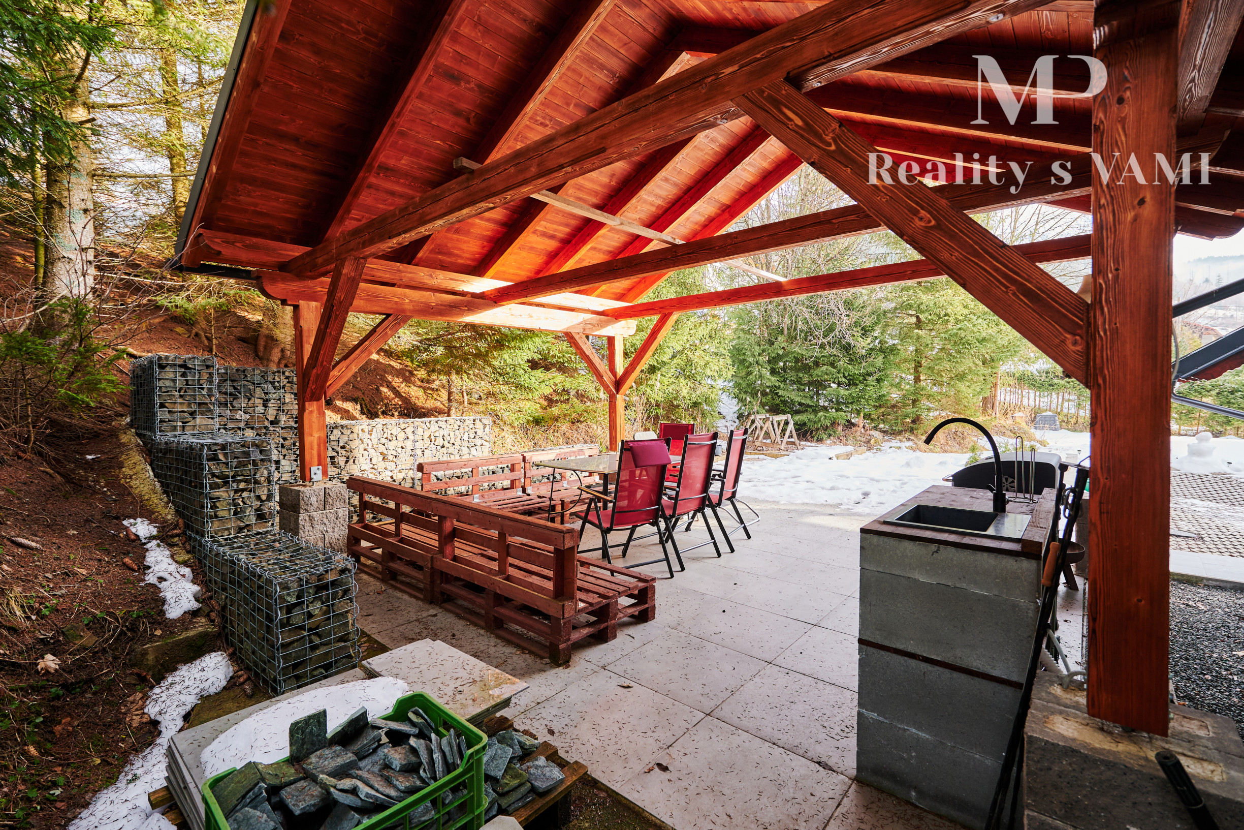 - altánok, terasa, parkovanie pre 5 áut